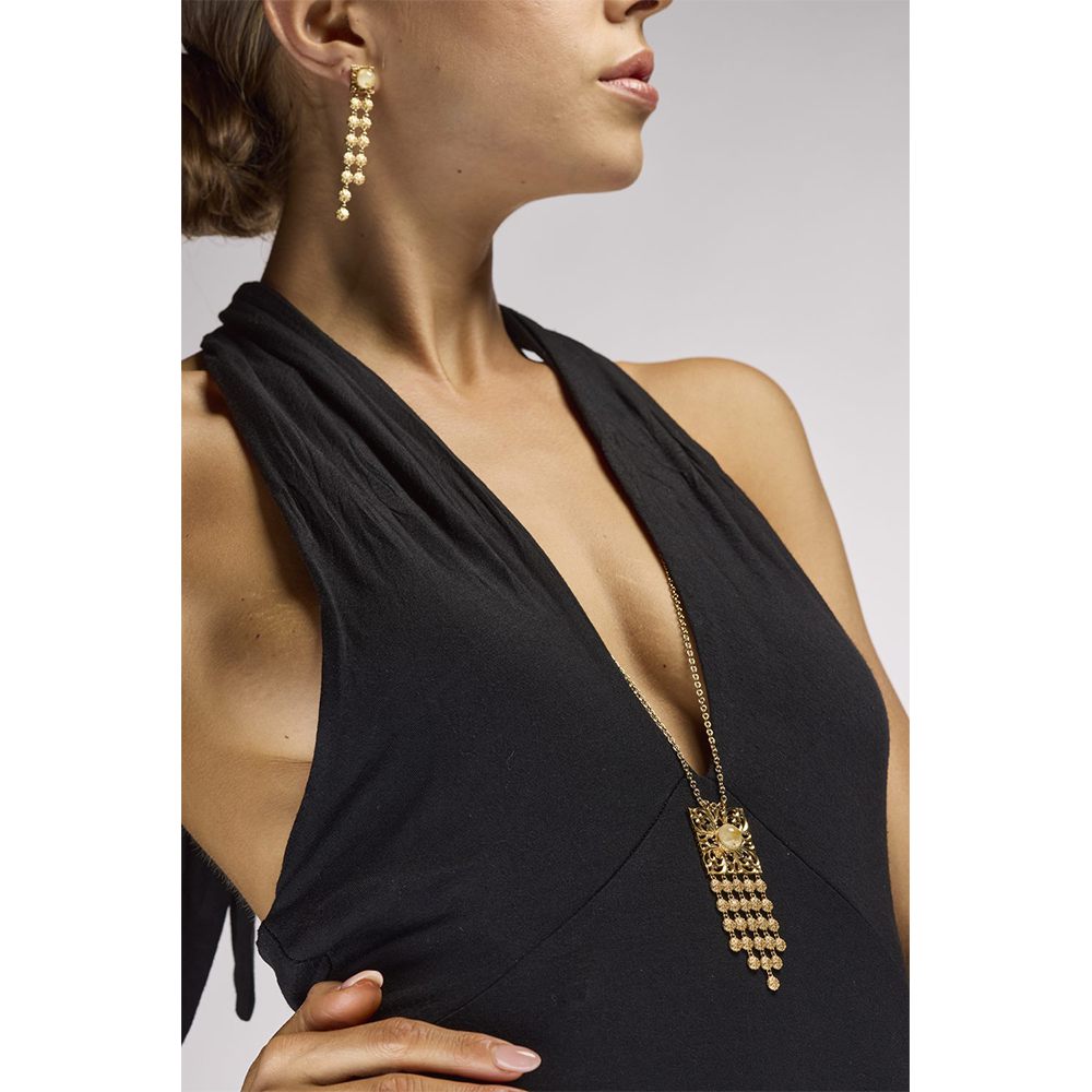 Be captivated by the timeless beauty of the pendant necklace from the “Seventeenth Century” collection. The delicate chain is completed with a square-link pendant decorated with intricate Baroque-inspired floral motifs. A piece of jewelry that captures the artistic spirit of seventeenth-century Italy, perfect for enhancing elegant necklines and collars. This necklace is made with a 23-karat gold-plated finish embellished with rutilated quartz.