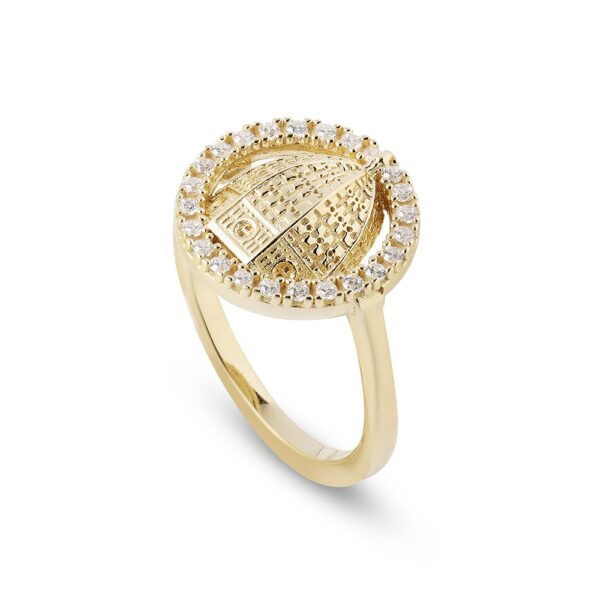The ring features Brunelleschi’s majestic dome in Florence at its center, surrounded by sparkling white stones.
